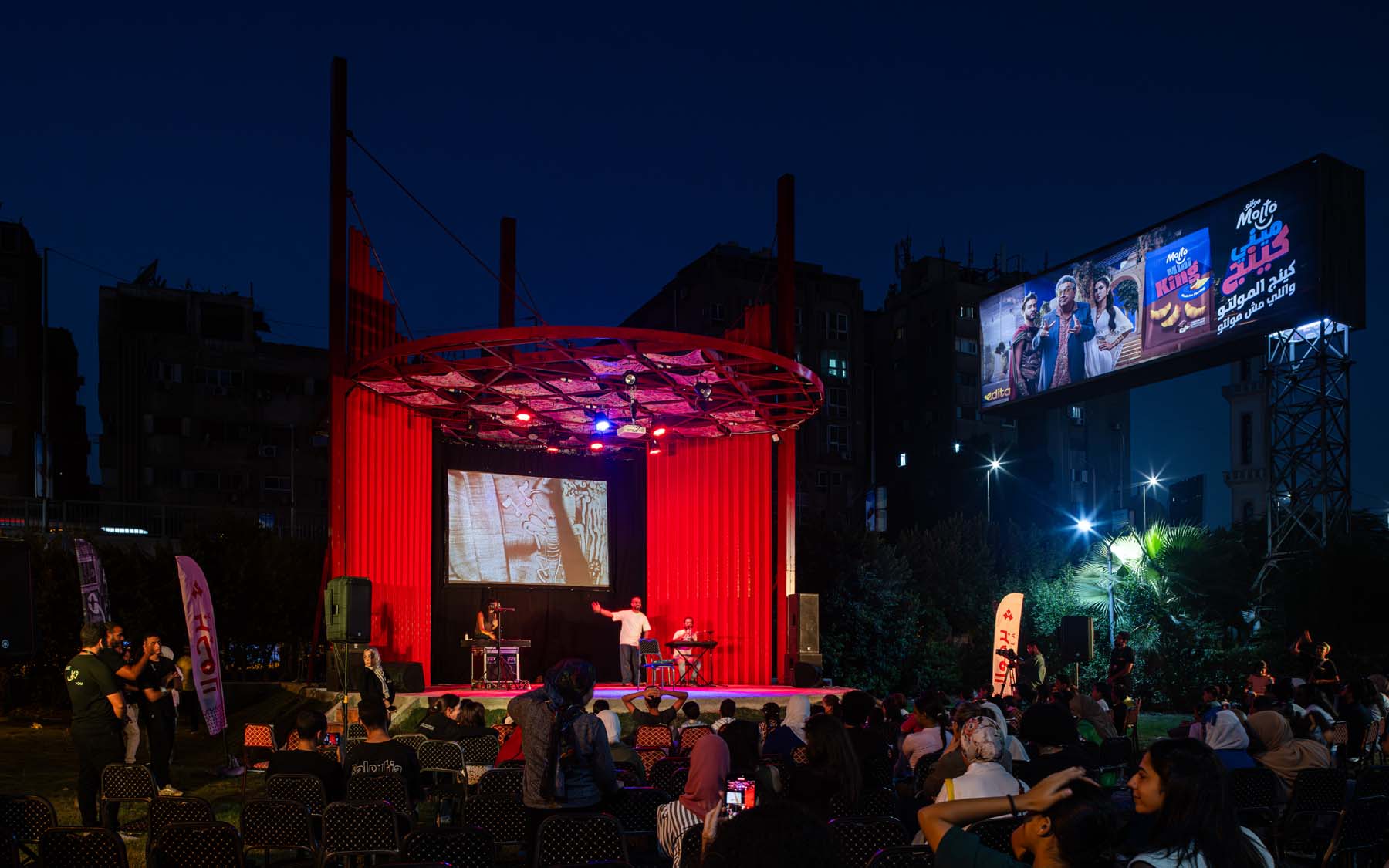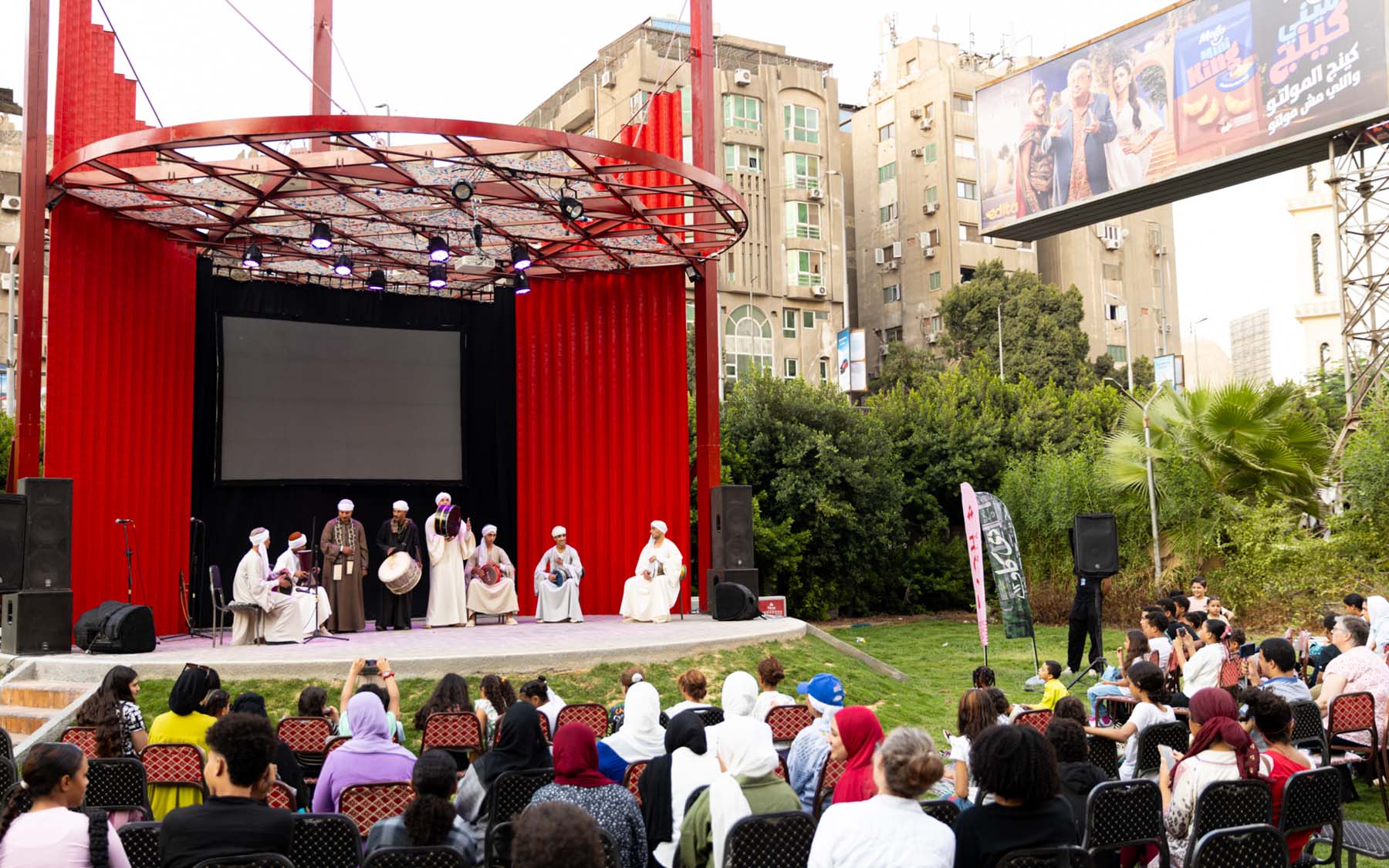 The Pergola is designed to be adaptable. It adopts sustainability principles through the incorporation of recyclable materials, including shading elements from recycled plastic sheets by VeryNile; flanking walls built with innovative plastic bricks from Reblox; as well as recycled plastic flooring interlocks by TileGreen. Pergola is conceived as more than just a theatre — it is a platform for gathering, celebrating, and reclaiming public space. It revives the traditional bands in city parks and offers an opportunity to introduce arts and culture to neighborhood communities. The open-air free venue is envisioned to host concerts, screenings, and performances that reflect the diversity and energy of Cairo’s independent arts and cultural scene.